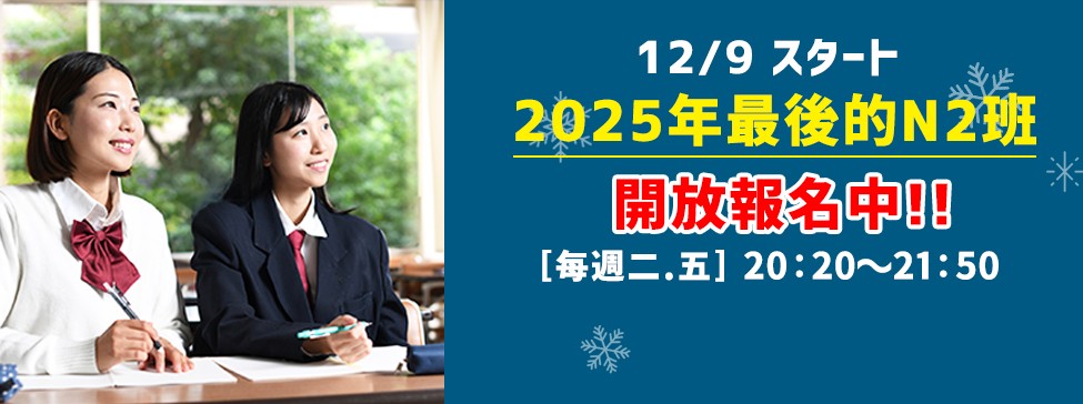 繁田老師今年最後一個N2班 12/9 即將開課!
