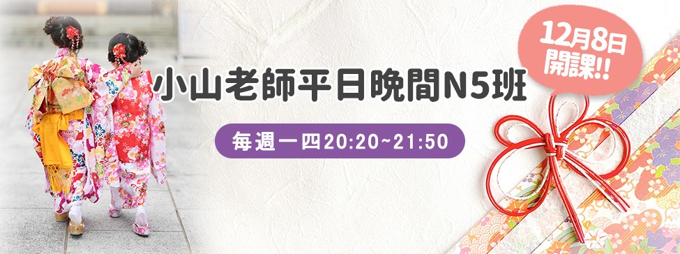 小山老師平日晚間50音班12/8 即將開課!